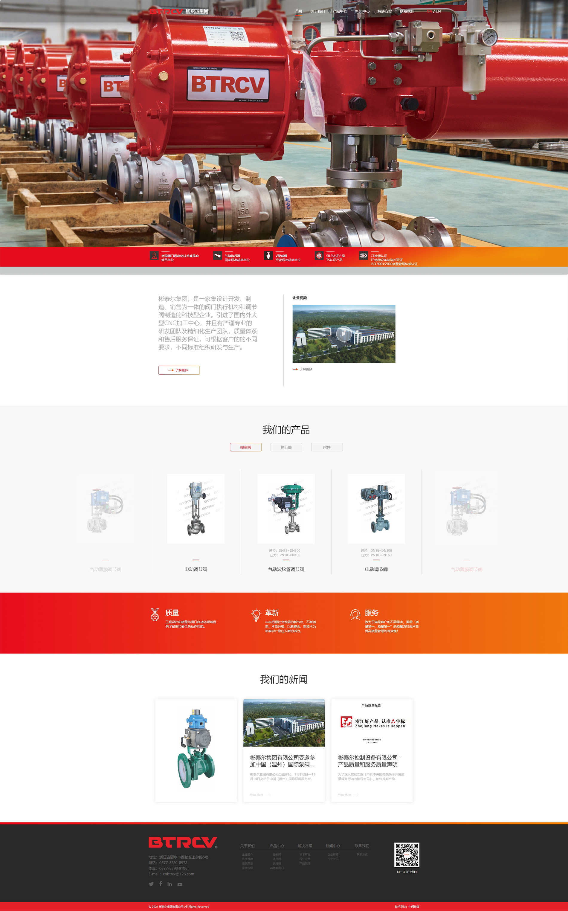 彬泰爾集團(tuán)有限公司是中國(guó)閥門(mén)協(xié)會(huì)會(huì)員單位、溫州市閥門(mén)協(xié)會(huì)副會(huì)長(zhǎng)單位,力灣區(qū)閥門(mén)協(xié)會(huì)副會(huì)長(zhǎng)單位,“閥門(mén)氣動(dòng)裝置技術(shù)條件”中華人民共和國(guó)機(jī)械行業(yè)標(biāo)準(zhǔn)起草單位,"V型球閥”中華人民共和國(guó)機(jī)械行業(yè)標(biāo)準(zhǔn)起單位,全國(guó)閥門(mén)標(biāo)準(zhǔn)化技術(shù)委員會(huì)委員單位。公司順利通過(guò)特種設(shè)備TS認(rèn)證,德國(guó)TUV SIL3認(rèn)證,歐盟CE認(rèn)證,德國(guó)TUV API607認(rèn)證,ISO9001質(zhì)量管理體系認(rèn)證,ISO14001環(huán)境管理體系認(rèn)證,ISO45001職業(yè)安全健康體系認(rèn)證等。 彬泰爾集團(tuán)有限公司專(zhuān)業(yè)生產(chǎn)氣動(dòng)控制閥、電動(dòng)控制閥、液動(dòng)控制閥。氣、液、電動(dòng)執(zhí)行器等自動(dòng)化產(chǎn)品的高科技型企業(yè)?,F(xiàn)有職工120余人,公司是集科研、生產(chǎn)、服務(wù)為一體,自有研發(fā)中心,是國(guó)家級(jí)高新技術(shù)企業(yè),并擁有發(fā)明和實(shí)用新型等相關(guān)專(zhuān)禾16項(xiàng)。自主研發(fā)的多項(xiàng)新產(chǎn)品,產(chǎn)品質(zhì)量榮獲中國(guó)石油和石油化工設(shè)備工業(yè)協(xié)會(huì)頒發(fā)的“名牌產(chǎn)品證書(shū)”、溫州市市場(chǎng)監(jiān)督管理局頒發(fā)的“放心工廠單位”等多項(xiàng)榮譽(yù)。