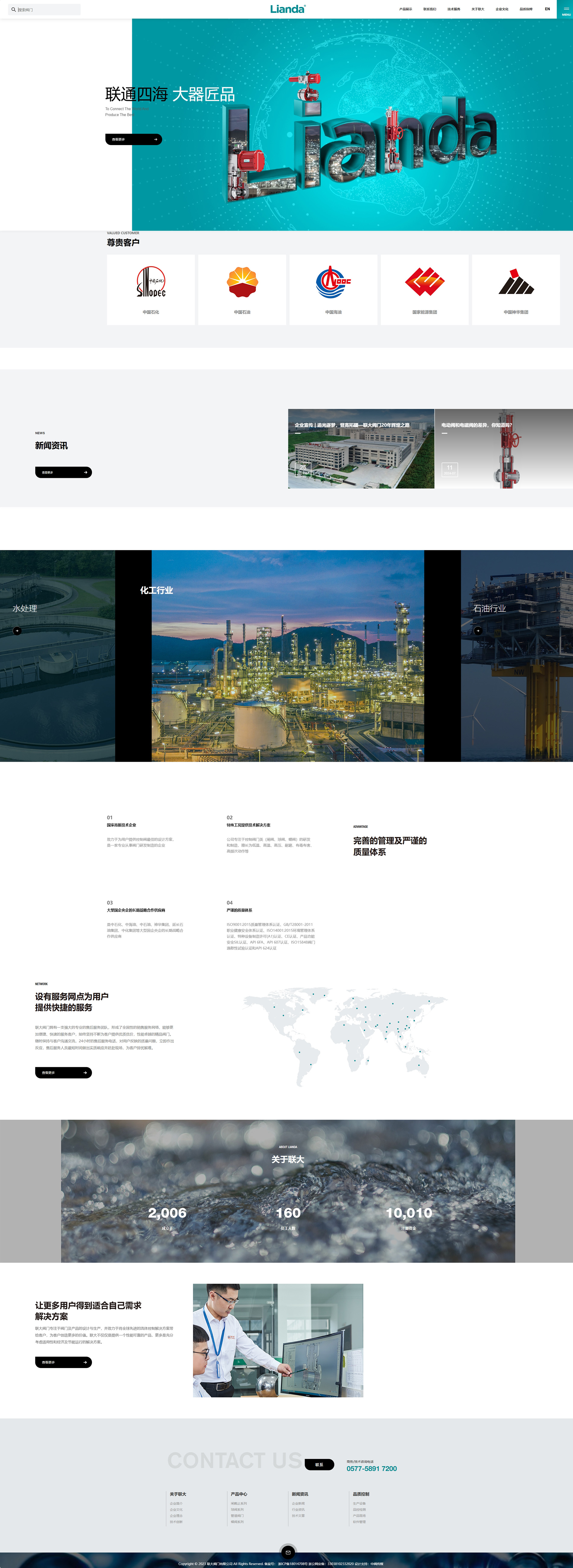 浙江聯(lián)大閥門有限公司,創(chuàng)立于2005年,位于國(guó)家歷史文化名城—溫州。致力于為用戶提供控制閥最佳的設(shè)計(jì)方案,是一家專業(yè)從事閥門研發(fā)制造的企業(yè),屬國(guó)家高新技術(shù)企業(yè)。 公司致力于設(shè)計(jì)制造低溫、高溫、高壓、耐磨等特殊工況的閥門產(chǎn)品,應(yīng)用于石油、化工、煤化工、電力、生物科技、有色金屬等眾多工業(yè)領(lǐng)域。主要產(chǎn)品有:金屬密封球閥、軟密封球閥、V型球閥、軌道球閥、平行雙閘板閘閥、平行單閘板閘閥、三偏心蝶閥、直行程籠式調(diào)節(jié)閥、單座調(diào)節(jié)閥等。 公司始終堅(jiān)持“制造控制閥精品、創(chuàng)造聯(lián)大品牌、鑄就聯(lián)大事業(yè)”的精神;堅(jiān)信只有安全可靠的產(chǎn)品,才能讓工業(yè)生產(chǎn)更穩(wěn)定,讓生活環(huán)境更美好,企業(yè)的價(jià)值才能最終得以實(shí)現(xiàn)。
